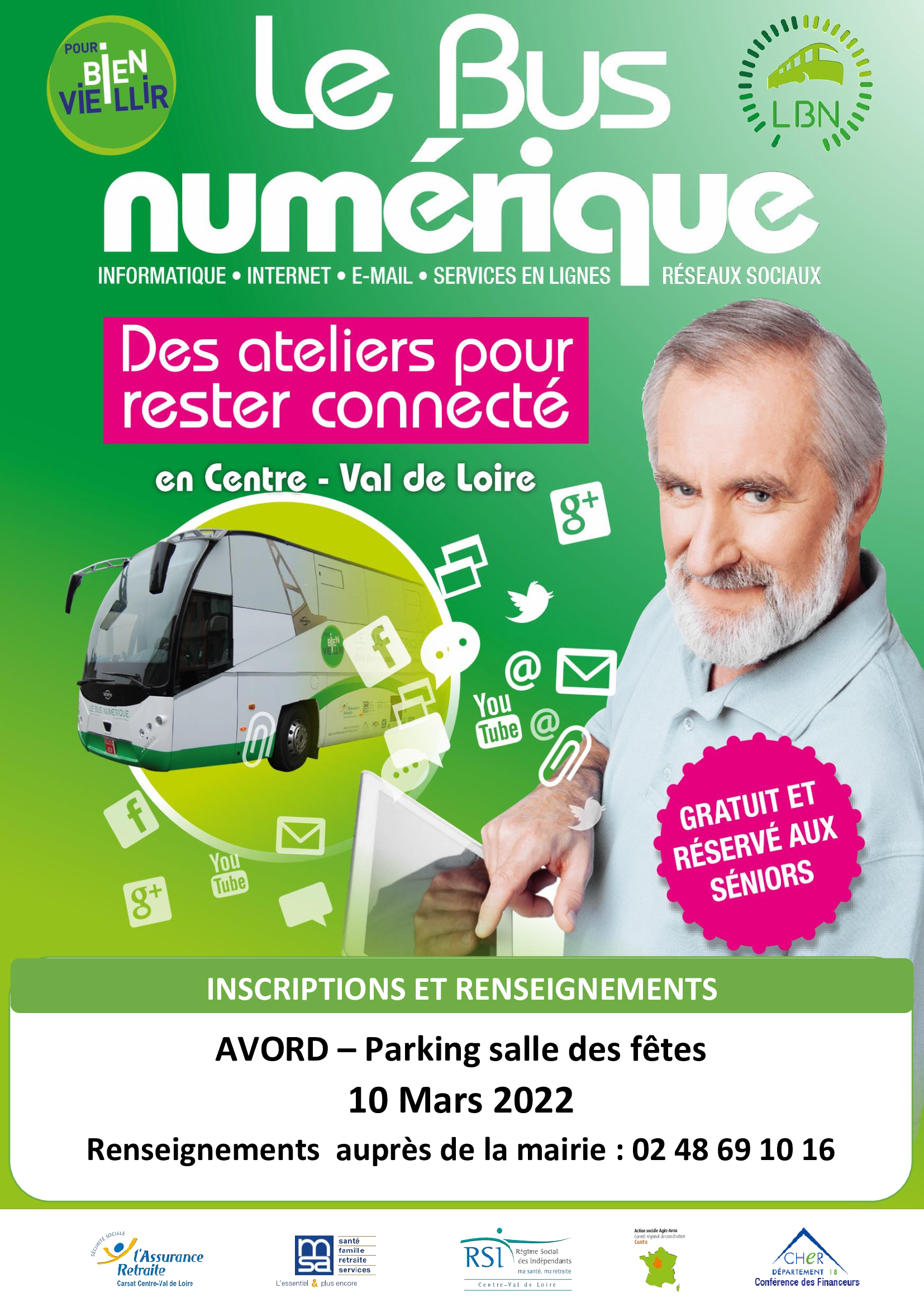 Le Bus numérique anime deux ateliers, le matin de 9h30 à 12h30 et l’après-midi de 14h à 17h, le 10 mars 2022. Inscription en mairie.