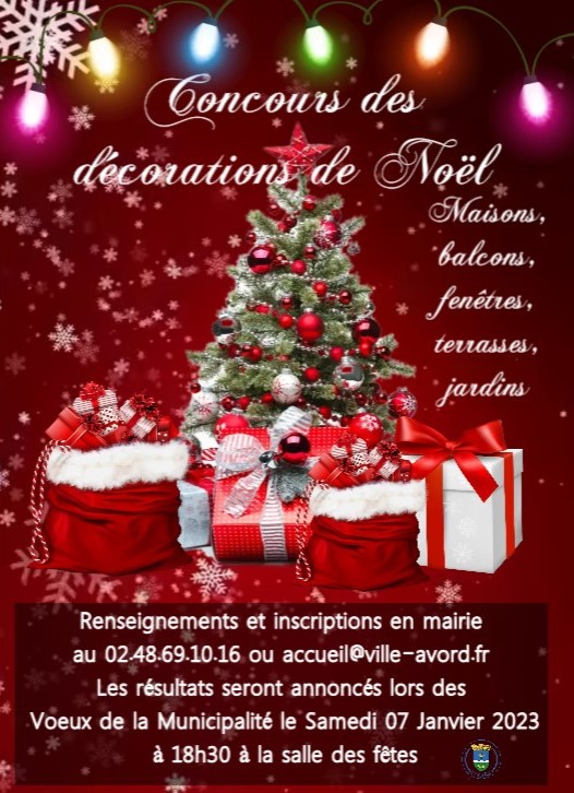 Concours des décorations de Noël30 novembre , 2022Règlement concours des décorations de Noël Coupon d’inscription concours des décorations de Noël