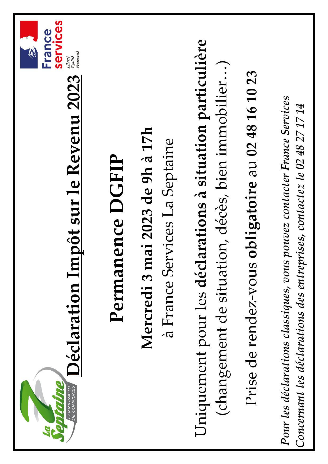 Déclaration “Impôts sur le revenu 2023” – Permanence DGFIP