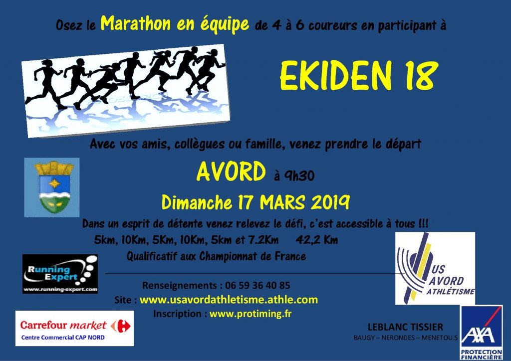 EKIDEN 1812 mars , 2019 Calendrier Quand : 17 mars 2019 @ 9 h 30 min2019-03-17T09:30:00+01:002019-03-17T09:45:00+01:00Où : Parc arboré route de fargesContact : US AVORD Athlétisme 06.59.36.40.85 Site de l’évènement