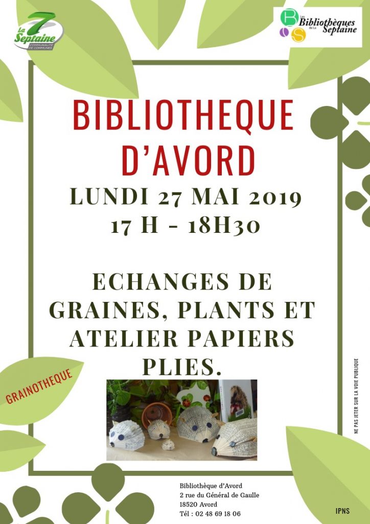 Grainothèque23 mai , 2019 Calendrier Quand : 27 mai 2019 @ 17 h 00 min2019-05-27T17:00:00+02:002019-05-27T17:15:00+02:00Où : Bibliothèque 2 rue du Général de GaulleContact : Bibliothèque Site de l’évènement
