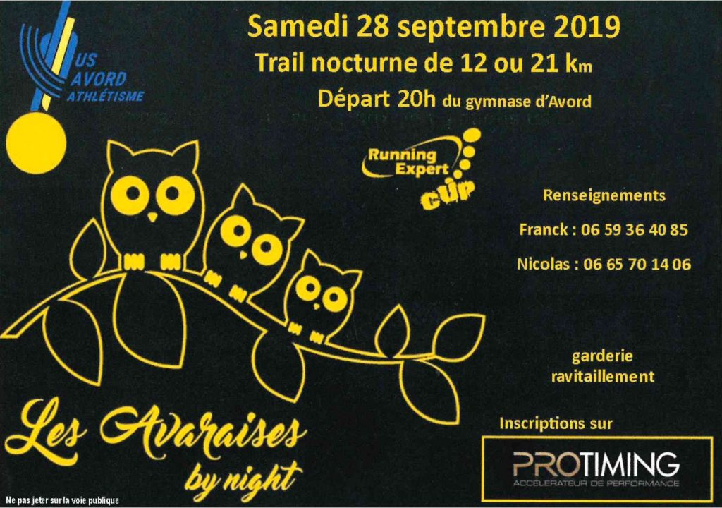Les Avaraises by night3 septembre , 2019 Calendrier Quand : 28 septembre 2019 @ 20 h 00 min2019-09-28T20:00:00+02:002019-09-28T20:15:00+02:00Où : Gymnase rue de l'YèvreContact : US Avord Athlétisme